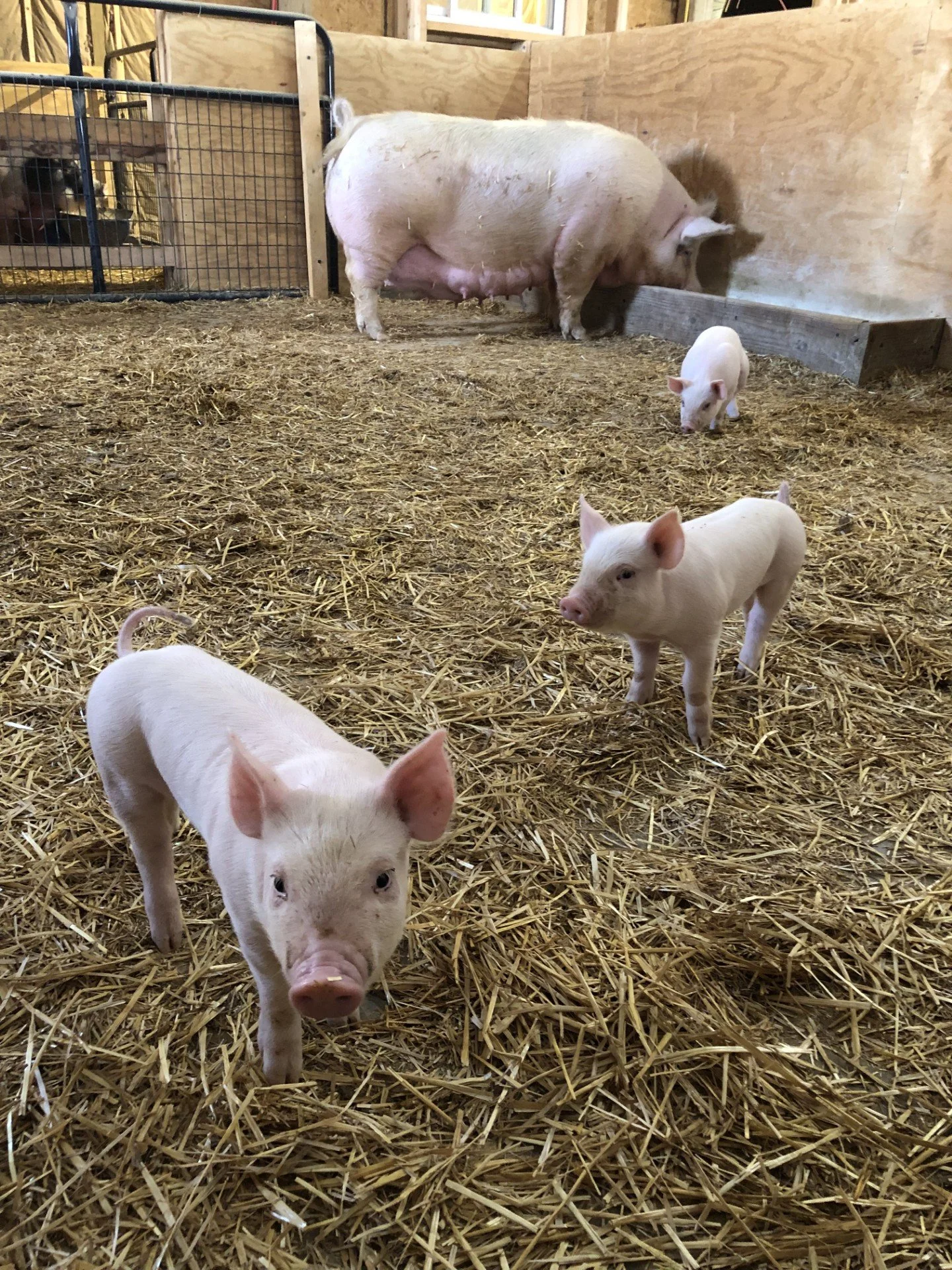 At our farm, our pigs are naturally born and raised without the use of growth hormones or antibiotics. They roam freely between their barn and spacious pastured paddocks, where they forage for fresh greens and natural sources of protein. We support their diet with a wholesome blend of hog grain and fresh produce from our garden, and they always have access to clean, fresh water from our on-site well.